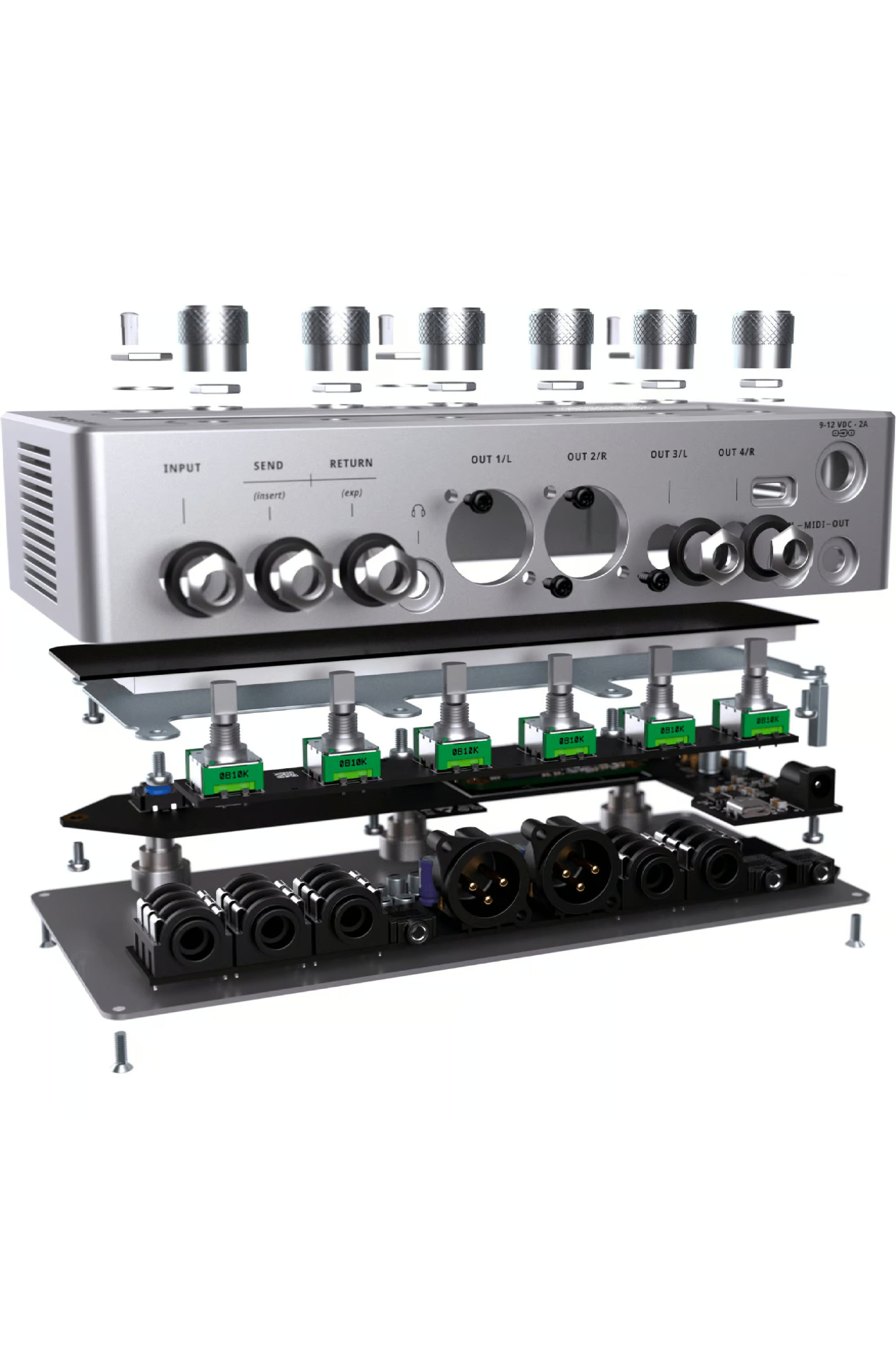 Umfassende Anschlüsse: Stereo-In/Out, XLR, MIDI, USB-C, FX-Loop, Expression